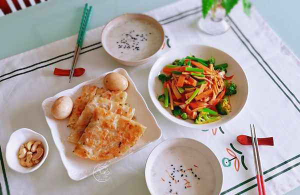 第二天:牛奶燕麥粥 + 蔥花餅 + 胡蘿卜炒杏鮑菇