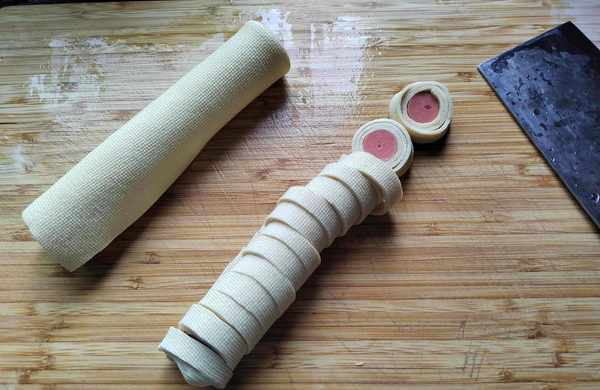 第五步:分別切成小份,切的時候,兩端會有一些散開,這是正常的,稍微整理一下就可以瞭。