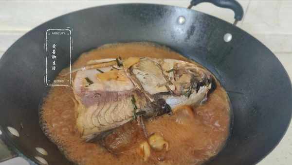 第七步,成品圖。看,煮得皮都爛瞭,這樣的魚頭才入味,另外,我不喜歡把魚頭剁開瞭燒,裡面的魚腦會減少,這樣做出來,魚腦恰如燉爛的白木耳,顫顫的,滑滑的,油而不膩,吃起來妙不可言。