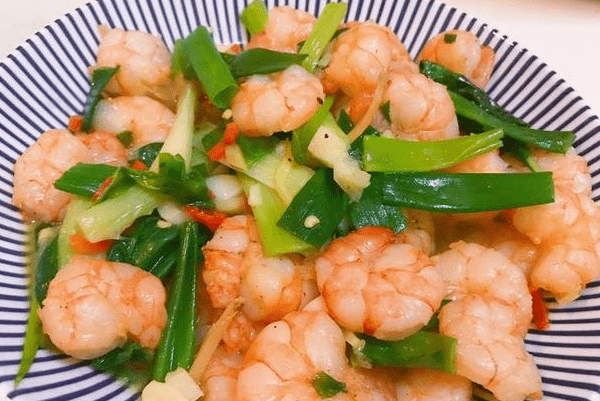 6 待蝦身變成紅色後,調入鹽翻炒幾下即可