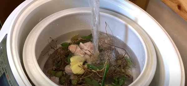 6、我們把這些湯料包清洗幹凈,水開下處理好的豬肝豬心豬骨頭,同時下清洗好的這些配料。用大火燒開,小火燉一個半小時。