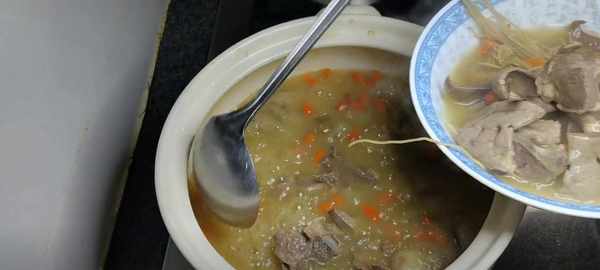 5、三個小時之後,石橄欖基本上燉出來氣質瞭,排骨也燉的非常爛,這一道護肝湯一直延續到現在,也是因為它所含的營養非常的好,喝一口真的非常甘甜