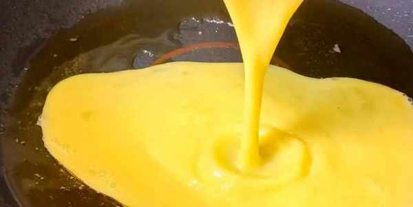 鍋中倒入少許的食用油,油熱以後倒入蛋液,把雞蛋炒熟。