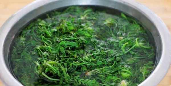 水開,加入小勺食鹽,洗幹凈的薺菜放入開水裡焯一下水。焯水30秒就可以瞭撈出過一道冷水,這樣更加的翠綠。