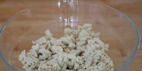 咱們再準備一小塊老豆腐切成小丁