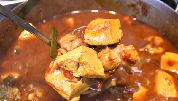 豆腐和魚經過燉煮,就連豆腐也吸滿瞭魚的鮮味和佐料的香氣,魚肉更是香辣開胃。