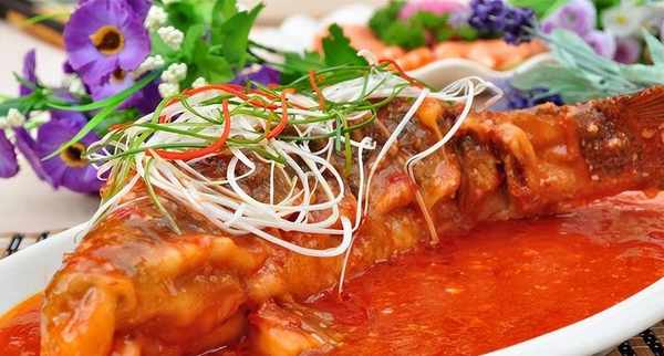 糟辣脆皮魚用的是草魚為主要材料,改好花刀後裹上淀粉,在油鍋裡炸到金黃酥脆後再撈出來,在鍋裡倒入各種佐料調出醬汁淋在魚身上就可以出鍋瞭。
