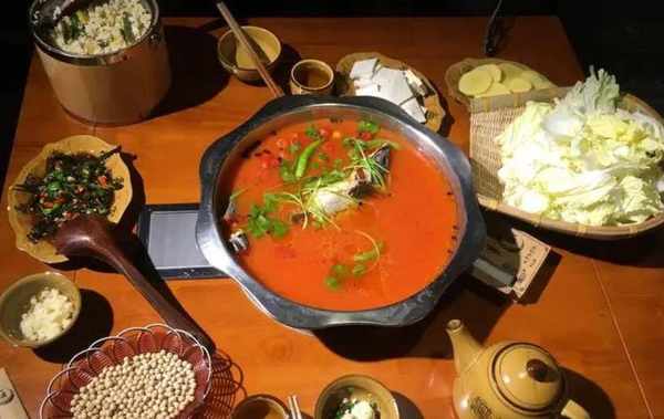 凱裡酸湯魚火鍋也是貴州代表性火鍋,最為新的的是底料是酸湯,以酸湯為底,魚為主料,湯底酸香爽口,口感獨特。能吃酸氣質的人,隻要吃一口,就會記住那種酸爽鮮香的滋味,真是讓人印象深刻。聽當地人說,這種酸湯魚火鍋裡放的西紅柿要選用那種野山上長的野山西紅柿才好吃,吃完魚以後再用湯來涮白菜和豆腐,那種酸香爽口的滋味加上魚肉、豆腐的鮮滑滋味,不是一般大棚中種出來的西紅柿能制作出來的口感。