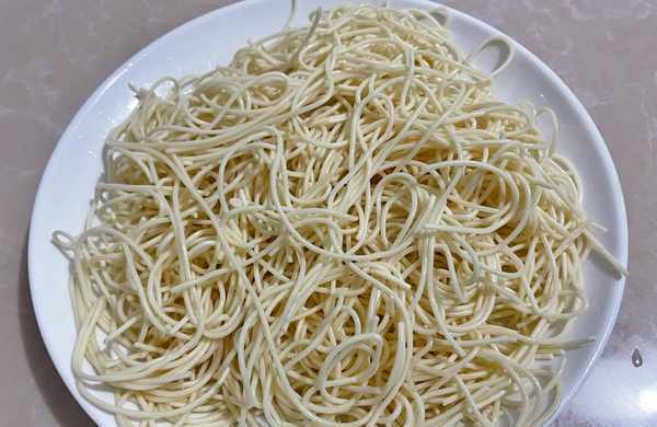2.面條中加入食用油拌勻,一是防止面條粘連,二是可以增加面條的勁道。