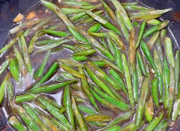 6.倒入清水,要沒過豆角,再放入一勺蠔油提鮮,攪拌均勻後,把湯舀出來一部分備用。
