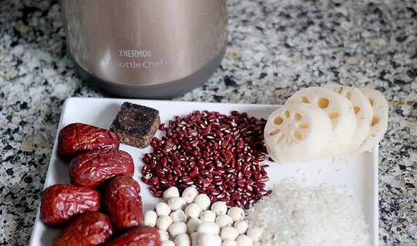 大米100克、赤小豆50克、紅棗5粒、老紅糖1塊、蓮藕90克、蓮子30克、清水1000ml、膳魔師燜燒鍋