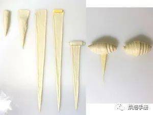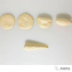 輕拍排氣,翻面如圖卷起像卷橄欖形的手勢,搓成胡蘿卜狀搓長一點