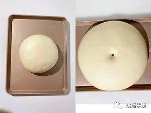 收圓發酵參考溫度25-28濕度75,發酵至按壓留下指印不快速回彈不塌陷