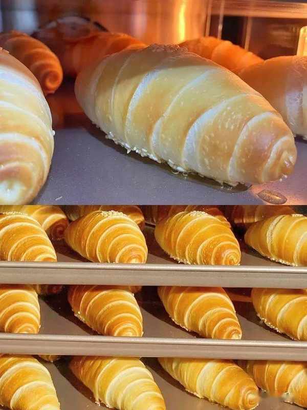 頭部放入有鹽黃油塊,面團兩側抹油避開頭尾,用刷子或者黃油直接塗上去都可,抹油烤出來紋路更好看不至於紋路消失~
