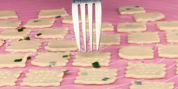 9.烤箱預熱上下火170度烤10分鐘,時間到瞭我們看下烤好的餅幹。一道美味的香蔥蘇打餅幹就做好瞭。