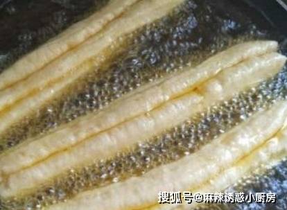 二大爺交給我的小妙招就是油條一定要下鍋5秒就趕緊把它給翻滾一下,所以一定要保證鍋中的油必須是到位,熱到六成熱,按照現在我們使用由300度沸點來算的話,180度的油就可以瞭,這樣炸出來的油條才會更加酥脆,而且受熱均勻之後就會自動發虛,口感吃起來非常棒。