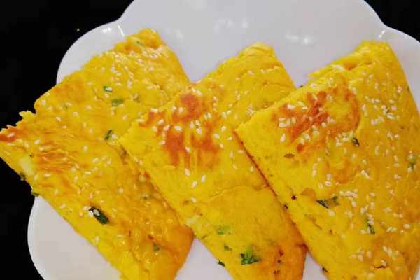 食材清單:半塊老南瓜,面粉250克,酵母粉4克,雞蛋2個,小蔥一把,食鹽1勺,五香粉適量,芝麻適量