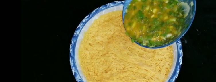6、用筷子攪攪勻,給面排一下氣,加入瞭雞蛋蔥花,做出瞭的面食肯定很好吃。