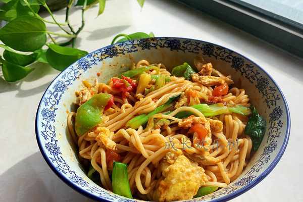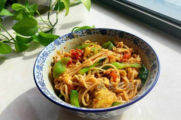 面條、西紅柿、青椒、雞蛋、大蔥、生薑、青菜;食鹽、生抽、陳醋、五香粉、老抽、油潑辣子
