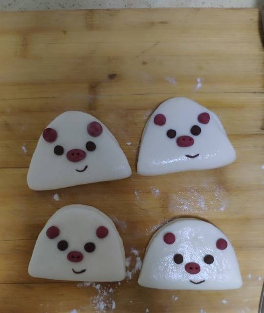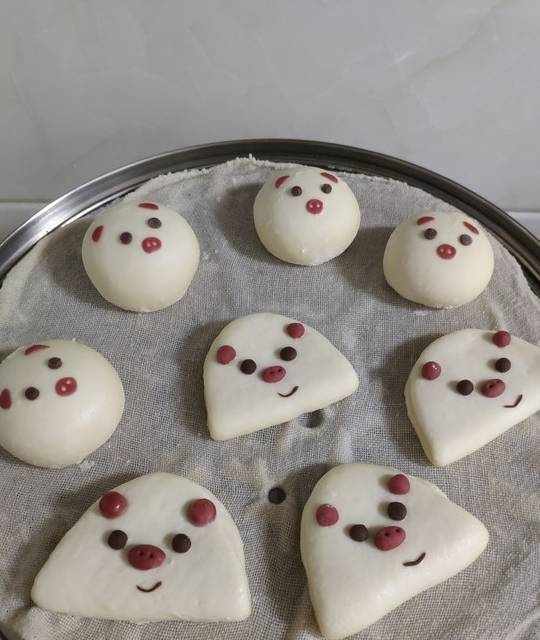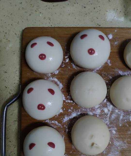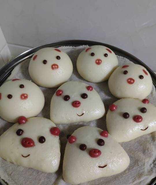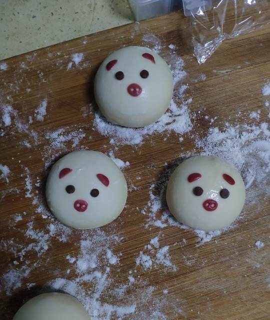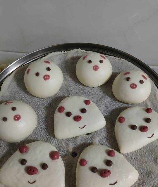 17.做好所有的“豬式”小吃。蒸鍋中放水,加熱到溫熱的狀態,關火放入小豬們進行發酵。