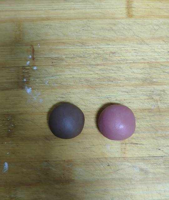 5.用可可粉和紅曲粉將其揉進面團中即可。