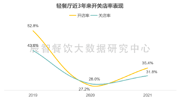 經歷瞭2019年超50%高開店率的爆發式增長,2021年輕餐廳開店率35.4%,關店率31.8%,重新回到較為健康的水平,行業“野蠻式擴張”時代已經過去,市場格局已經初步成型,品類發展開始轉向做強品牌力的精細化運營階段。