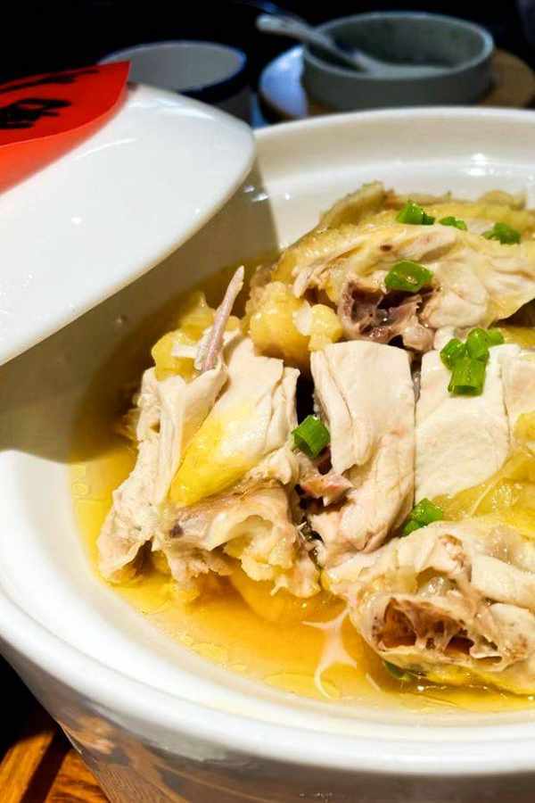 比較神奇的一點是,文昌雞這三個字,既可以是一個雞的品種,也可以代指一種做法。在華南地區,以海南島文昌雞為主料,配以火腿 、雞肝、郊菜,蒸煮而成的菜肴可以直接被稱為文昌雞。端上來的時候看著如同精雕細琢的藝術品,緊致的雞肉覆蓋著一層晶瑩剔透如桂圓一般的外皮,仿若吹彈可破,實際上正宗的文昌雞口感非常筋道,沒一副好牙口輕易咬不動。