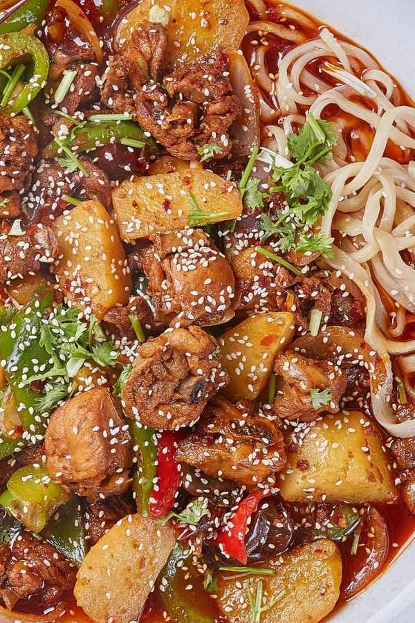 大塊雞肉遇上土豆新疆大盤雞就是這麼豪爽。
