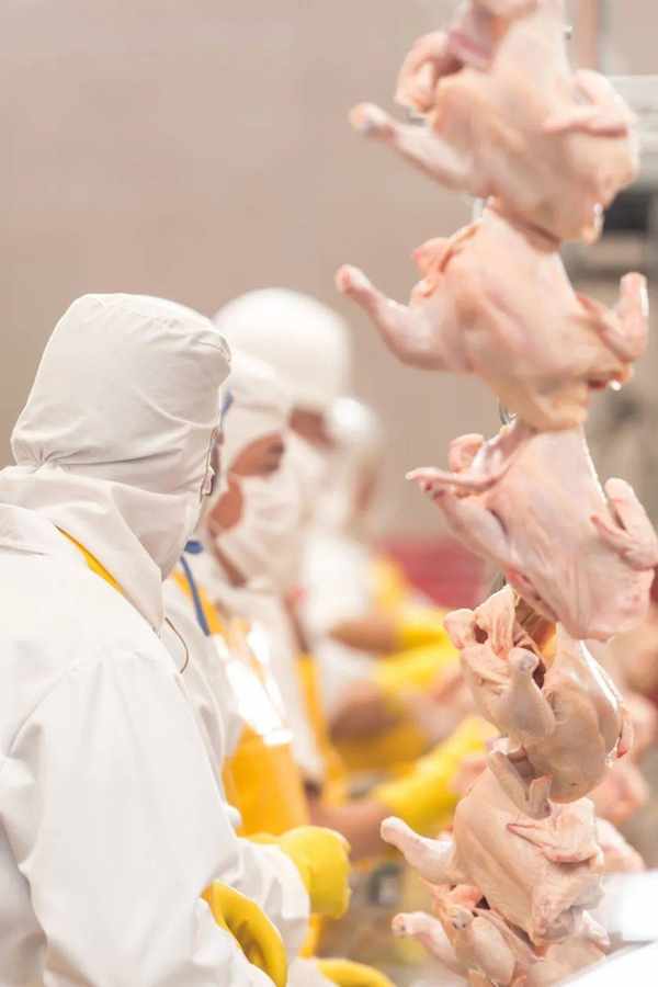 一隻隻無菌處理的白雞,正待供應市場。圖 / 視覺中國