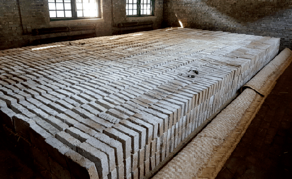 汾酒制曲車間的師傅介紹,每一間曲房大約需要擺放3600-4500塊的曲磚,曲磚的間距精準到4-5厘米,行距精準到0.5-1.5厘米,而這些都是制曲師傅一塊一塊手工擺放的。