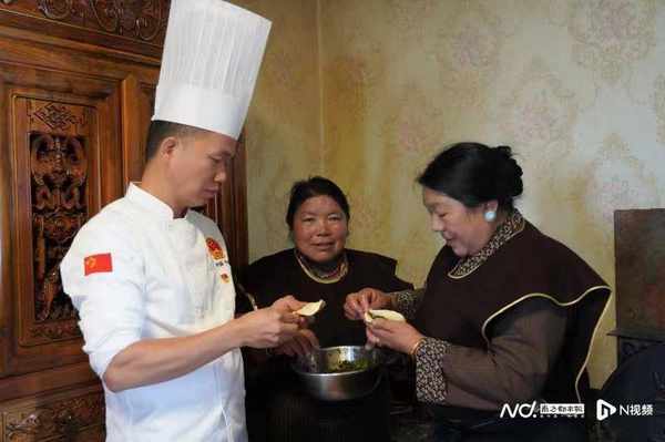粵菜師傅張發妙來到工佈江達縣巴河鎮朗色村白瑪倫珠傢中,走進廚房制作冷水魚、五香牛肉,還與白瑪倫珠的傢人一起制作當地特色包子,在火爐上煎松茸、切藏香火腿,並與他們一起進行粵、藏語交流。他精心制作的菊花雞成為重點推介的招牌菜,他與羅佈桑珠、巴金汪甲、翁切拉姆及白瑪倫珠的傢人一起分享交流推介這道特色粵菜,贏得客人們的一片叫好聲。張發妙在交流推介中說:“菊花雞的制作食材比較特別,食材采用的是本地藏雞,菊花是中山小欖帶來的食用菊花,也是中山的非物質文化遺產,兩者結合在一起象征著兩地美食文化的完美結合,也是中山援藏和廣東粵菜師傅工程與西藏美食文化交融的重要體現。”