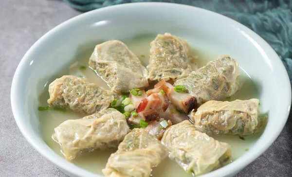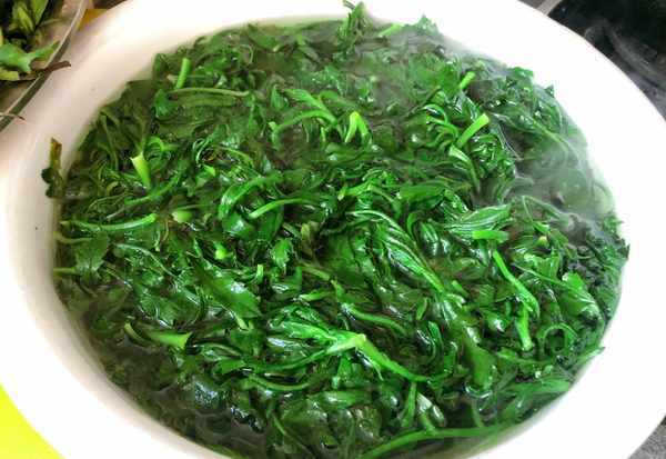 (2)接著將艾葉處理幹凈,熱水下鍋放入少許食用堿煮30秒
