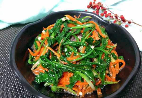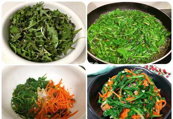 (2)鍋中水開放鹽和油,然後放入蒲公英焯水半分鐘,撈出來放入胡蘿卜 木耳煮熟
