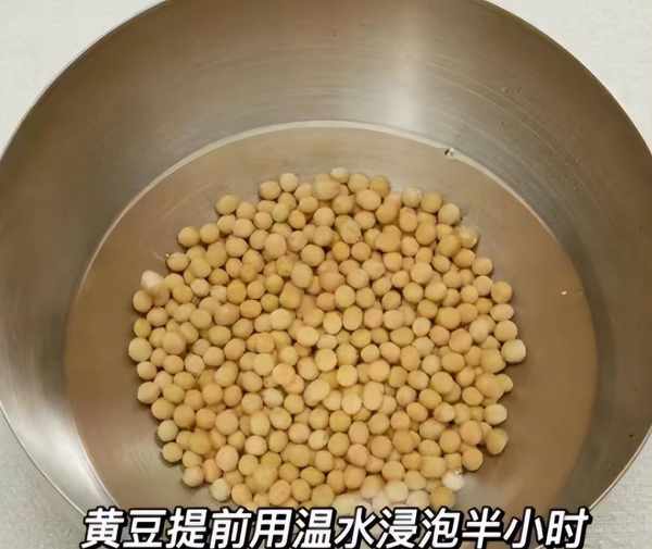1:提前準備好黃豆,苦瓜和排骨,先把黃豆放在容器裡,加上適量溫水,提前浸泡半個小時,撈出控幹水分。