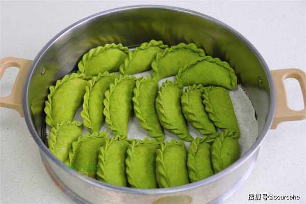 【咸味青團】餡料:蘿卜幹炒豆腐幹,青團皮:糯米粉、粘米粉、艾葉。1.蘿卜幹、豆腐幹,切成大小相同,鍋燒熱之後,倒入油,煸炒香大蒜、幹辣椒,放入蘿卜幹、豆腐炒熟。2.艾葉清洗幹凈,放入沸水鍋裡加少許生薑,焯水撈出,然後放入破壁機打成漿糊。3.粘米粉250克、糯米粉250克,攪拌均勻,再加入艾葉漿糊400克,攪拌揉搓。4.取一小團,搟薄,放入餡料,包成鎖邊餃子形狀。5.做好的青團,放入蒸籠,隔水蒸15分鐘即可。