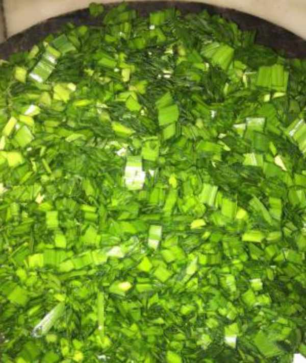 步驟3韭菜瀝幹水,切碎;
