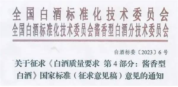 今年3月初,《白酒質量要求第4部分:醬香型白酒國傢標準(征求意見稿)意見的通知》(下稱醬酒新國標意見稿)終於在時隔兩年後正式出爐,並面向行業各部門進一步征求意見。
