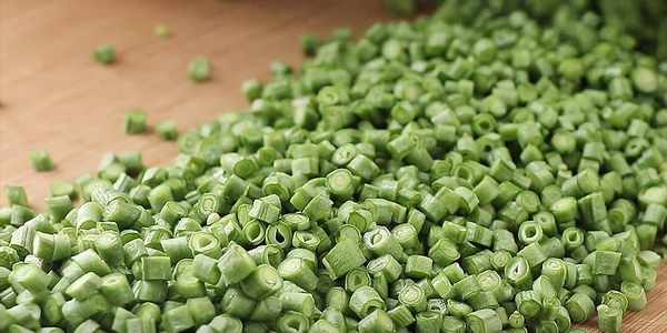 1.準備一把豆角,也叫作豇豆,擇洗幹凈,把它切成小碎丁備用。