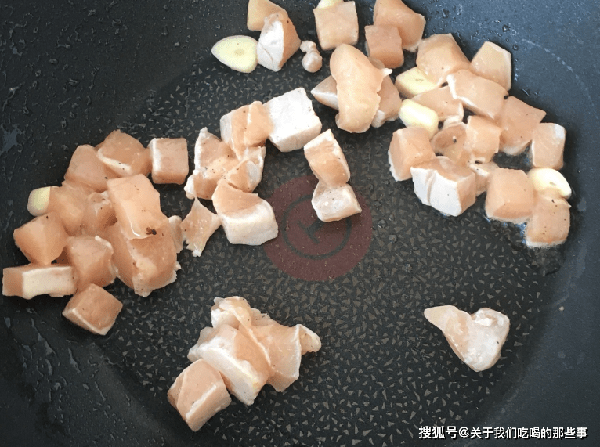 2、蒜瓣去皮後切末,生薑切片,萵筍擠幹水分備用。起鍋燒油,四成熱時倒入醃好的肉片,中火滑炒至變色後盛出。