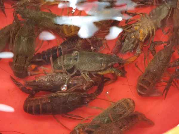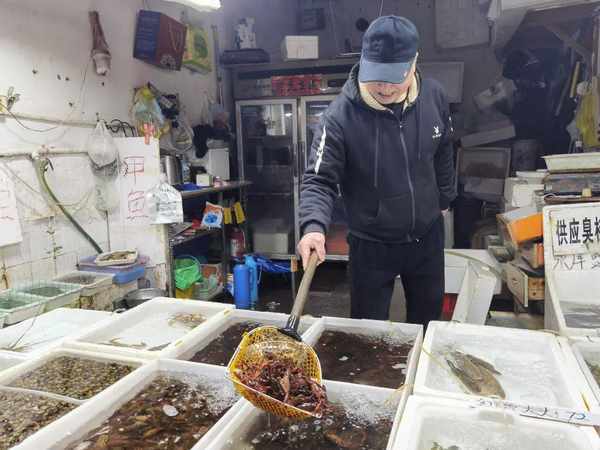 近日,記者來到位於寶山城區的一傢菜場,看到少數的幾傢水產攤位上,不同種類、不同大小的小龍蝦已經上市,不時有市民駐足問價。