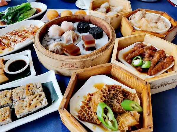 廣東人吃早茶,一般會點很多好吃的,比如蝦餃、糯米雞、廣東叉燒包、醬汁金錢肚、鮑汁雞腳、蟹籽燒麥皇、鮮蝦紅米腸、蒸排骨等等。