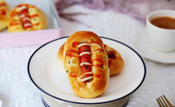 所需材料:高筋面粉200克,雞蛋液20克,純牛奶110克,糖30克,鹽2克,奶粉10克,酵母3克,黃油20克,火腿腸3條,蔥適量,沙拉醬適量,番茄醬適量,蛋液(刷表面)適量