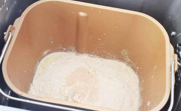 制作過程:1、按照先時尚後固體的順序,先將雞蛋液、純牛奶放入面包桶中,白糖和鹽對角放、高筋面粉、低筋面粉、最後再放入酵母,啟動和面程序