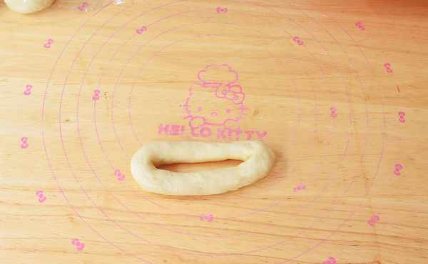 5、取一個小劑子搓成長條狀,然後對折兩頭捏緊實,如圖所示,放在溫暖處進行二次發酵