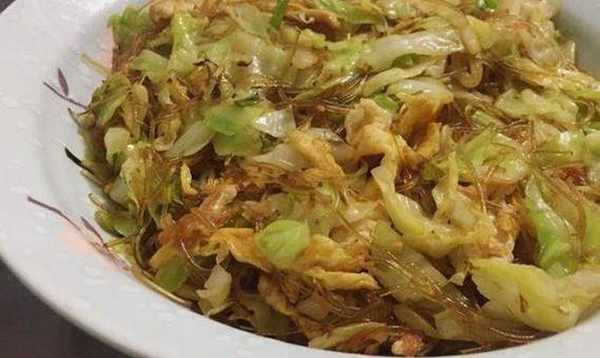 材料:雞蛋一隻、龍口粉絲一把、包菜適量、色拉油適量、生抽適量、蒸魚豉油適量、雞精適量;