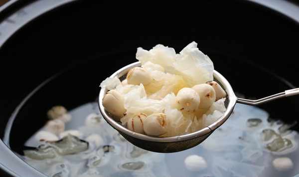 煮制過程中要適當地翻動一下食材,這樣銀耳出膠又快又均勻。
