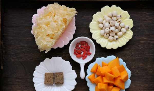 兩至三人份需要銀耳半朵、蓮子1小把、南瓜1塊、紅糖2小塊、枸杞少許。食用南瓜的禁忌我整理在文章最後的小提示裏了,您一定要記得看。