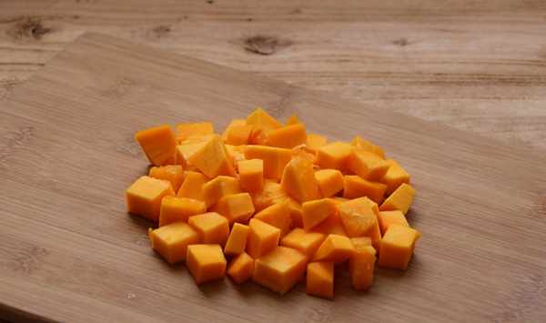 南瓜去皮去瓤,清洗乾淨後切成大小適中的塊兒。南瓜塊別太大了,不容易煮熟。