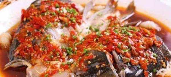 食材:胖頭魚頭1個(2斤),剁椒,鹽2克,味精3.5克,糖1克,色拉油60克,紅油10克,薑10克,蔥8克