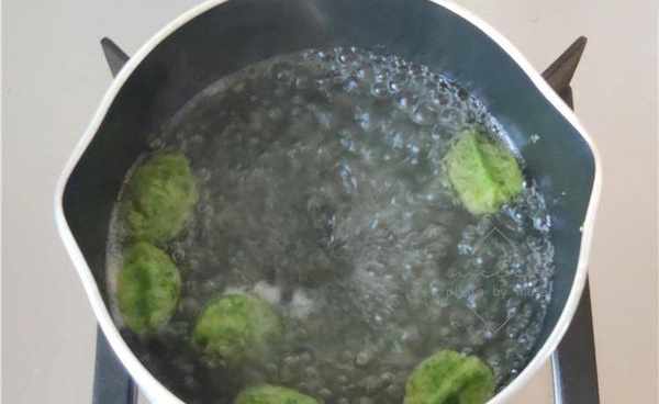 9、依次把所有的青團都做好,鍋內加水燒開,青團墊上油紙,放入鍋中蒸10分鐘蒸熟。